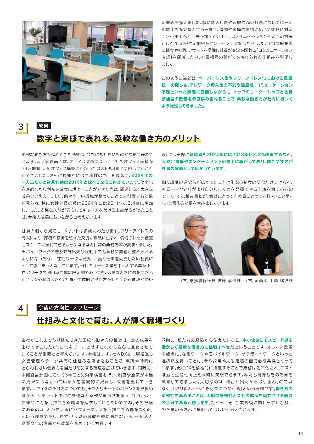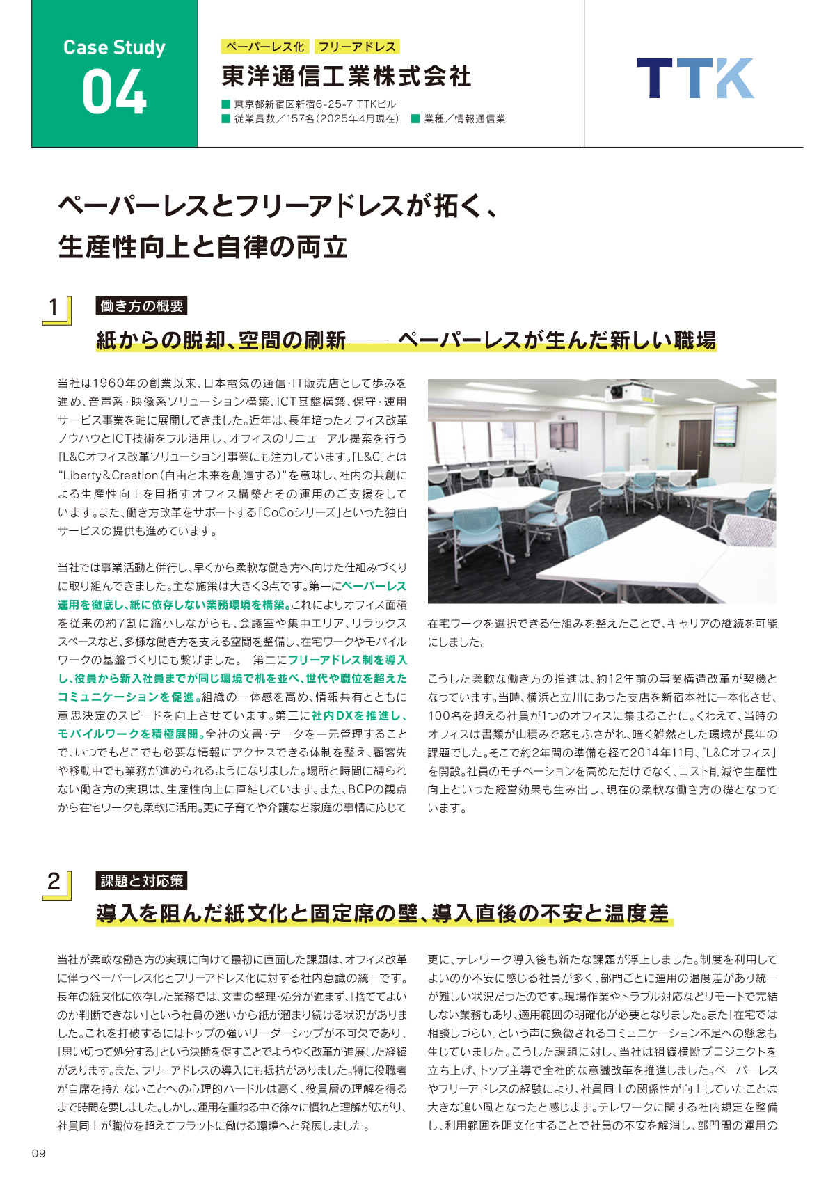 東洋通信工業株式会社 ペーパーレス化とフリーアドレスが拓く、生産性向上と自律の両立。徹底したペーパーレス運用とモバイルワークの積極展開で、人財定着と企業成長を加速。 ⤢ ✕ PDFをダウンロード(399KB)